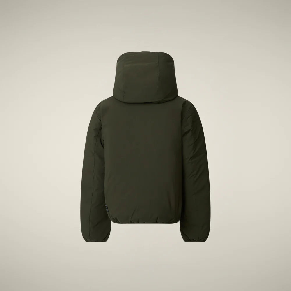 Die Jungen-Wendejacke Modell Oliver ist auf einer Seite gesteppt, auf der anderen glatt. RECYCLED PLUMTECH® wärmt, Kapuze, verdeckte Reißverschlusstaschen und Lycra-Abschlüsse an Ärmeln und Saum sorgen für Komfort. Personaliserter Zipper und rundes Ärmel-Logo sind die markentypischen Details.